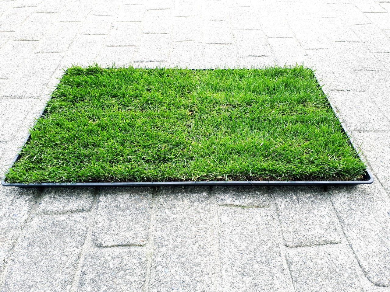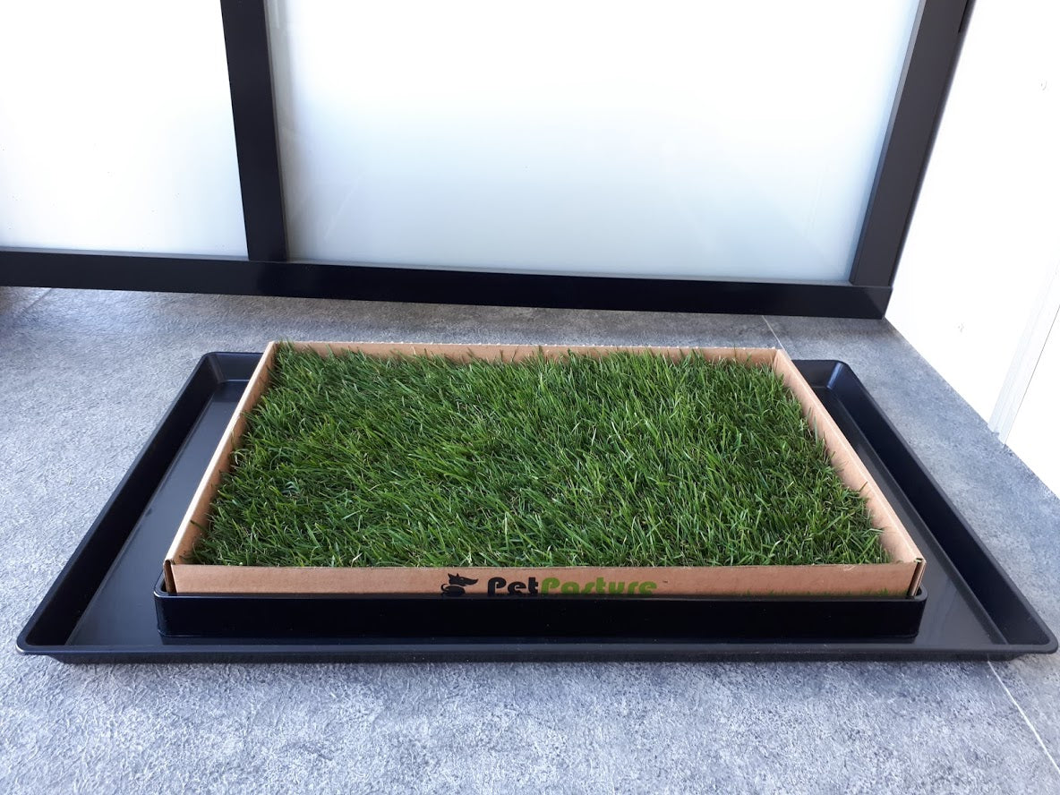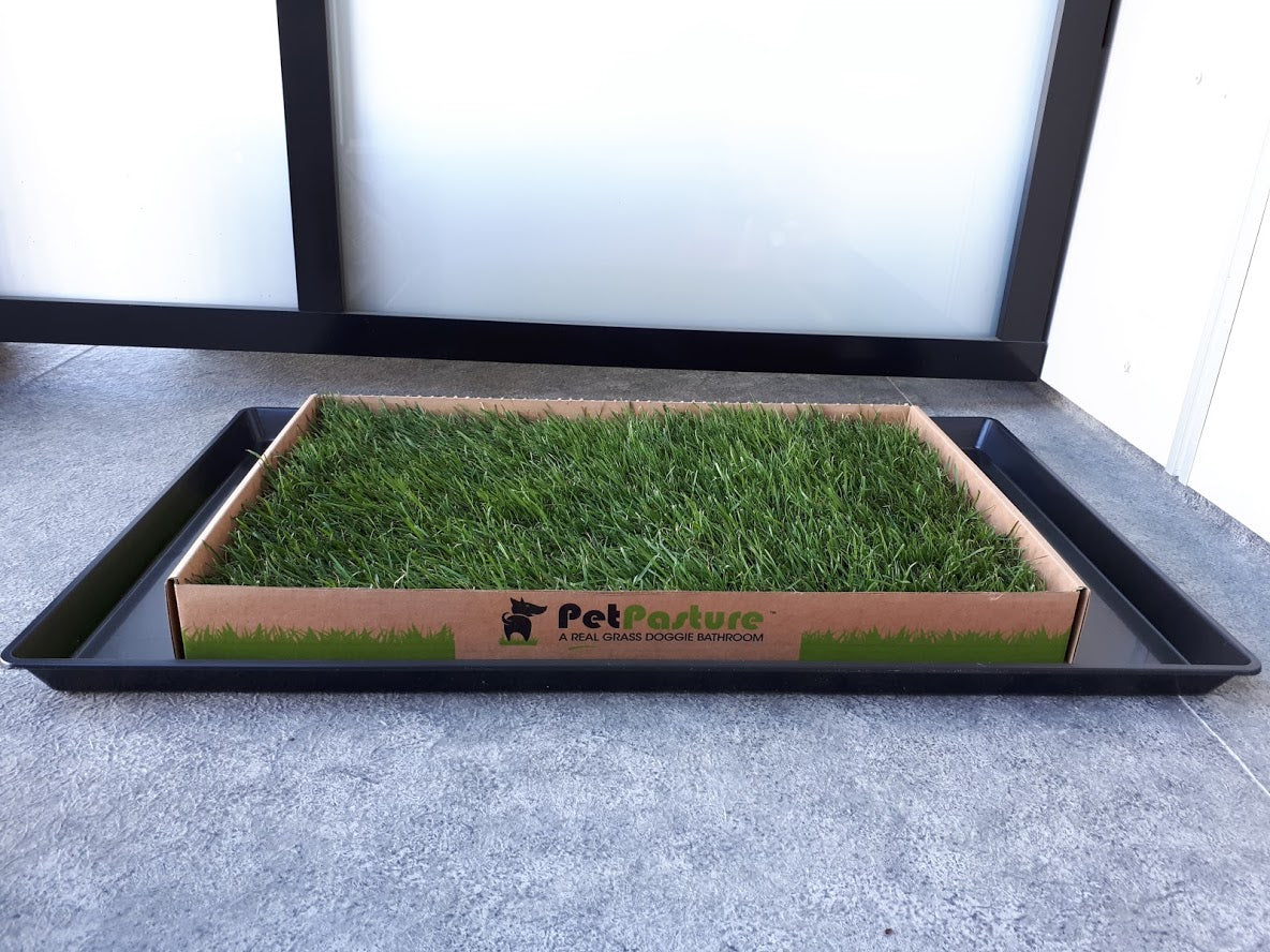 - The solid plastic leak proof King Tray - (measures 21" x 34") for medium/large sized dogs. Designed to be filled with Pet Pasture grass (grass sold separately as Refill grass).